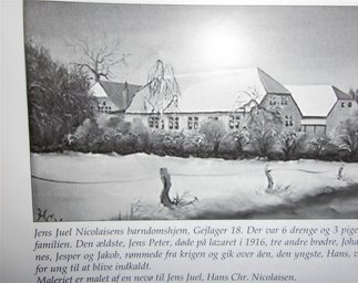 Min fars fødehjem. Billedet malet af fætter Hans Christian Nicolaisen (Kedde)